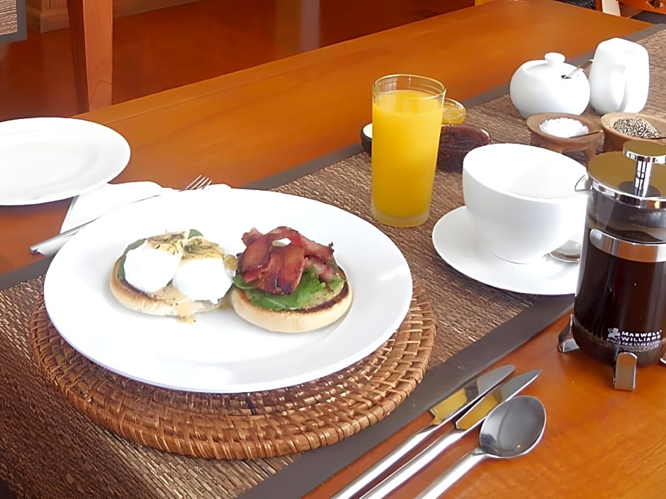 This large room has a kitchenette, private bathroom, 42"flat screen TV, comfortable seating area, separate entrance and patio with BBQ. Please note the rate is based on 1 guest only. Rate includes breakfast and WiFi access.